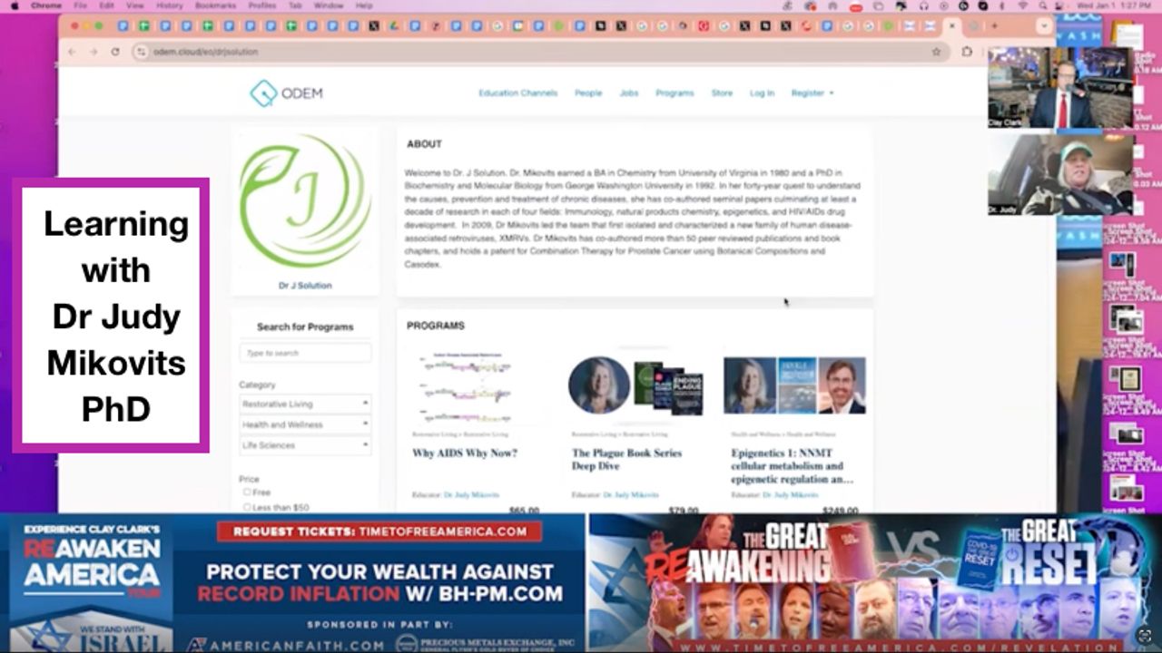 Judy Mikovits, PhD: Well, if you go on the website, you'll see classes, teaching, books, ODEM. Go look at our newsletter. There you are. Here's the classes right under the teaching part of Dr J Solution, which is very green, and you will never stop me.