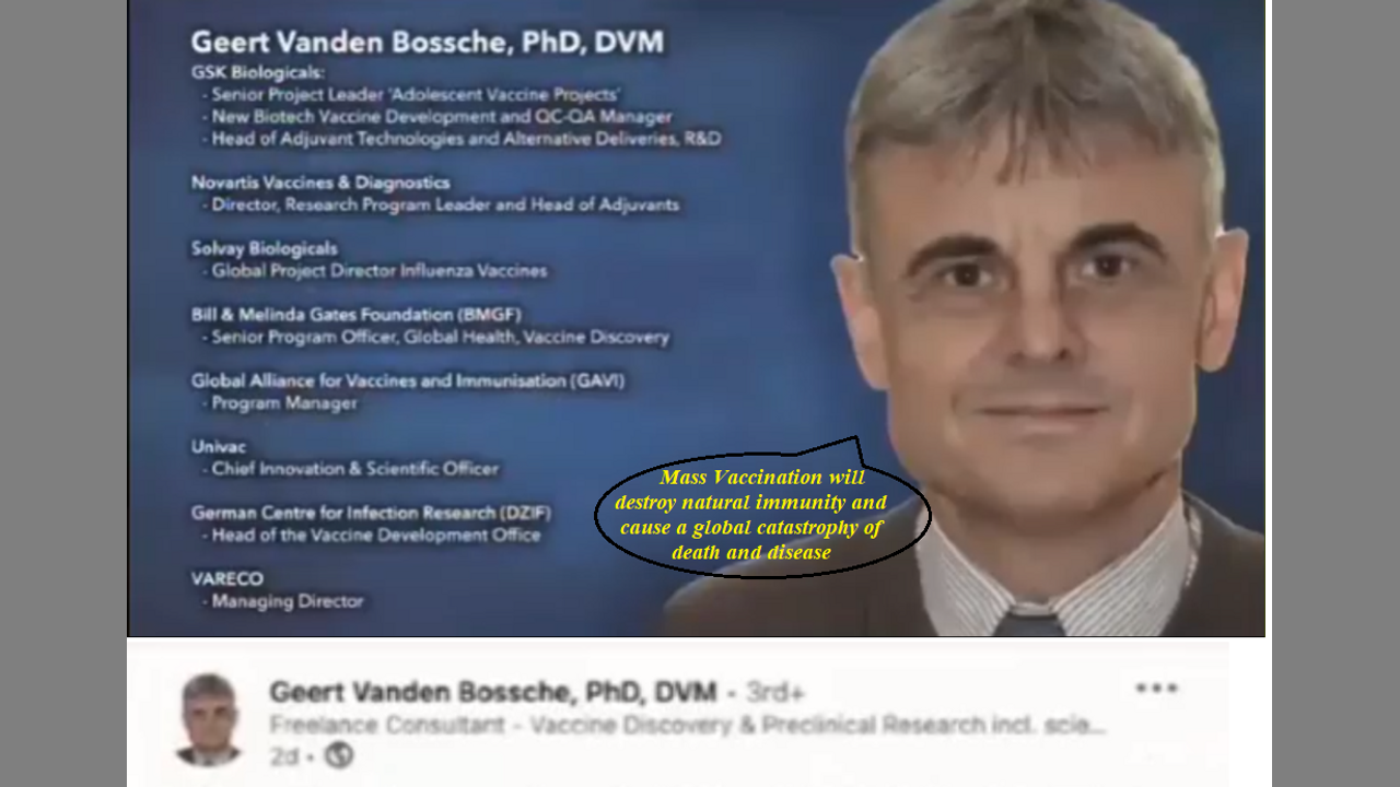 Vaccine Maker/Administrator Geert Vanden Bossche's Letter to the W.H.O and the Global Medical Bureaucracy