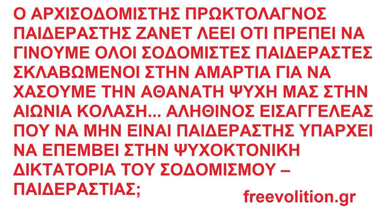 Ο ΑΡΧΙΣΟΔΟΜΙΣΤΗΣ ΠΡΩΚΤΟΛΑΓΝΟΣ ΠΑΙΔΕΡΑΣΤΗΣ ΖΑΝΕΤ ΛΕΕΙ ΟΤΙ ΠΡΕΠΕΙ ΝΑ ΓΙΝΟΥΜΕ ΟΛΟΙ ΣΟΔΟΜΙΣΤΕΣ ΠΑΙΔΕΡΑΣΤΕΣ ΣΚΛΑΒΩΜΕΝΟΙ ΑΜΕΤΑΝΟΗΤΟΙ ΣΤΗΝ ΑΜΑΡΤΙΑ ΓΙΑ ΝΑ ΧΑΣΟΥΜΕ ΤΗΝ ΑΘΑΝΑΤΗ ΨΥΧΗ ΜΑΣ ΣΤΗΝ ΑΙΩΝΙΑ ΚΟΛΑΣΗ... ΑΛΗΘΙΝΟΣ ΕΙΣΑΓΓΕΛΕΑΣ ΠΟΥ ΝΑ ΜΗΝ ΕΙΝΑΙ ΠΑΙΔΕΡΑΣΤΗΣ ΥΠΑΡΧΕΙ ΝΑ ΕΠΕΜΒΕΙ ΣΤΗΝ ΨΥΧΟΚΤΟΝΙΚΗ ΔΙΚΤΑΤΟΡΙΑ ΤΟΥ ΣΟΔΟΜΙΣΜΟΥ – ΠΑΙΔΕΡΑΣΤΙΑΣ; https://rumble.com/v4996hb-the-archisodomist-pedophile-proctolagnos-jannet.html , https://ugetube.com/watch/VS2DxixzIx3fMeS .