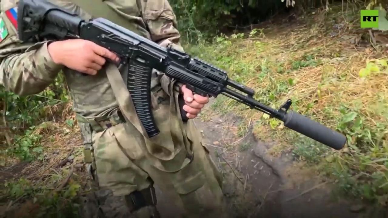 "Northwest of Lisichansk, in the town of Privolye, the clean-up operation begins. The sights in the town are all too familiar – fortifications dug among farmland, bullet casings strewn in the streets. A dead Ukrainian soldier lies mangled from mortar fire, yet no signs of an explosion can be seen, and the uniform is strangely shorn of chevrons and insignia. The men of the Akhmad Battalion have seen this before, and carefully dispose of the body at a safe distance from the mine that may be hidden." - RT News