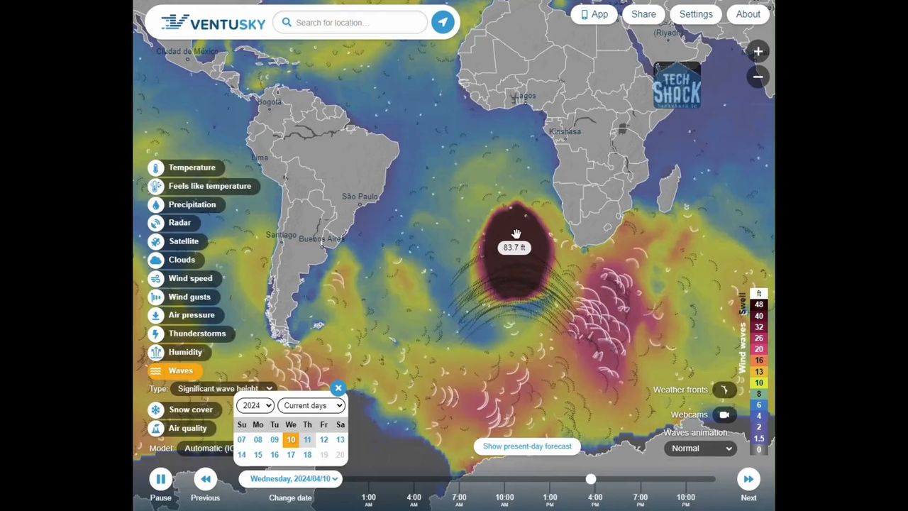 This massive blob of 80ft waves just showed up off the coast of South Africa. It moved north and just vanished. Could it have been a meteor?
