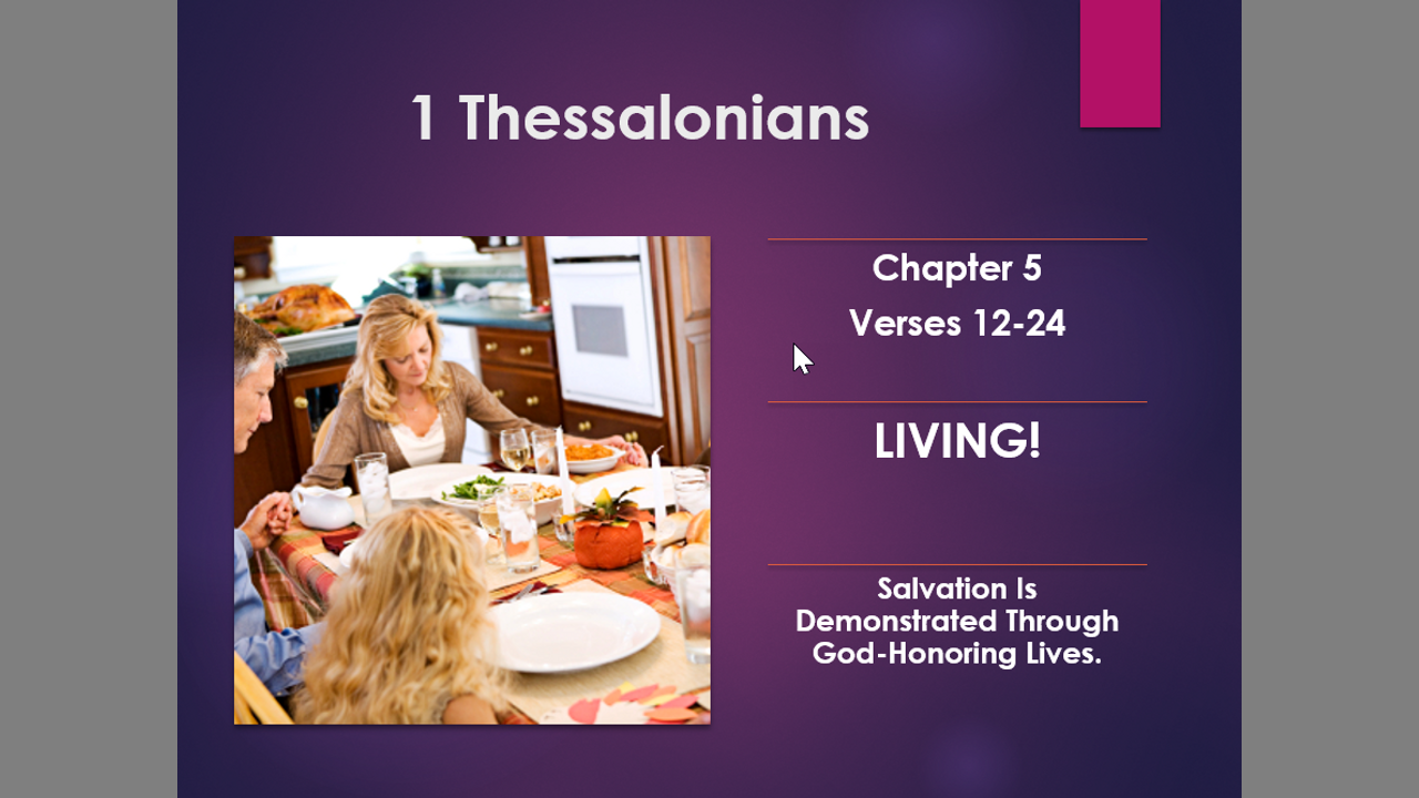 1 Thessalonians 5:12-24 LIVING - Salvation Is Demonstrated Through God-Honoring Lives.