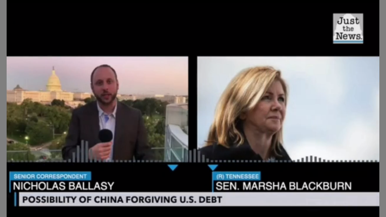 Sen. Marsha Blackburn, R-Tenn., is calling on China to forgive its share of the U.S. debt, which she says would be a “good solid step” toward "restitution" for the loss of life and economic distress that Beijing's mishandling of coronavirus has caused America.