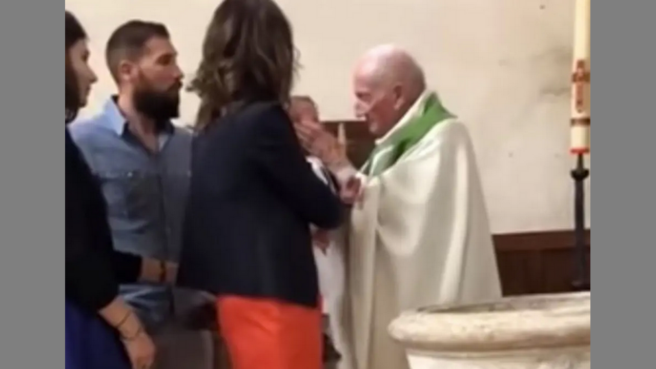 Catholic Priest SLAPS Baby on Camera!