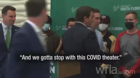 Ron DeSantis walks into the University of South Florida and tells the students they don’t have to wear their masks. He told them to take them off because honestly they’re not doing anything and we have to stop with this Covid theater