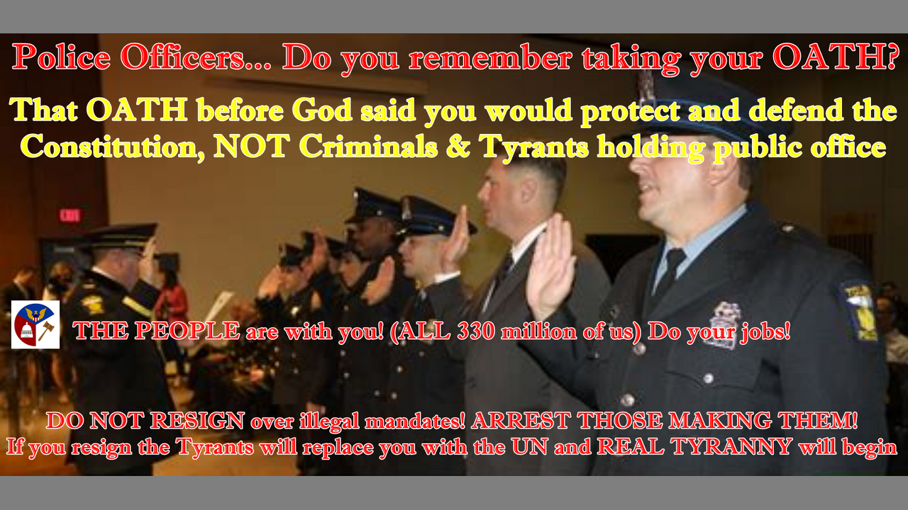 POLICE OFFICERS DON'T RESIGN! UPHOLD YOUR OATH AND ARREST THOSE VIOLATING THE CONSTITUTION!