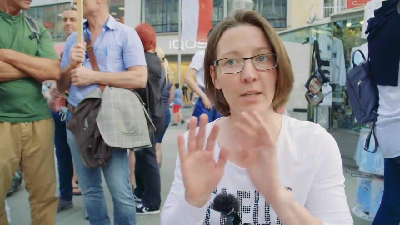 Impfung und Risiken - Die Dame im Rollstuhl (Corona Demo München 9.5.2020)