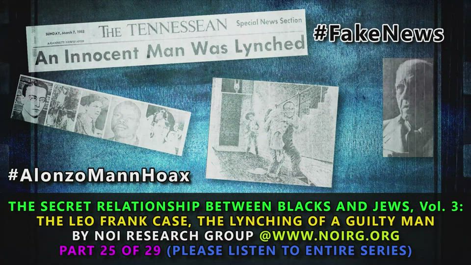 In this, the twenty-fifth audio segment of this ground-breaking work originally published by the Nation of Islam, part of their series called The Secret Relationship Between Blacks and Jews, we take the falsehoods the Tennessean invented — or regurgitated, some of them debunked as long ago as 1913 — in their promotion of Alonzo Mann’s contradictory tale and show them for what they are: a sad attempt to exploit a sick, old man — and rehabilitate the reputation of a sex killer (who just happened to be a B’nai B’rith official and member of a wealthy elite).