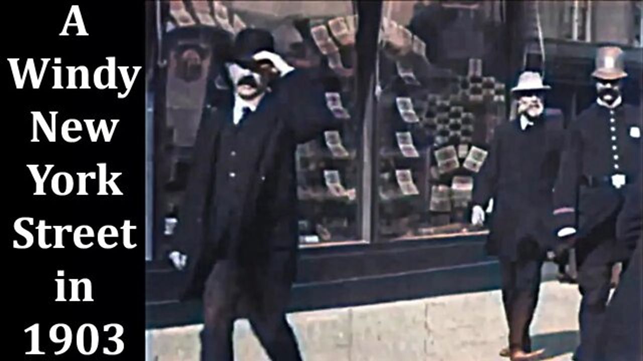 A Windy New York Street In 1903 - Filmed On October 26, 1903