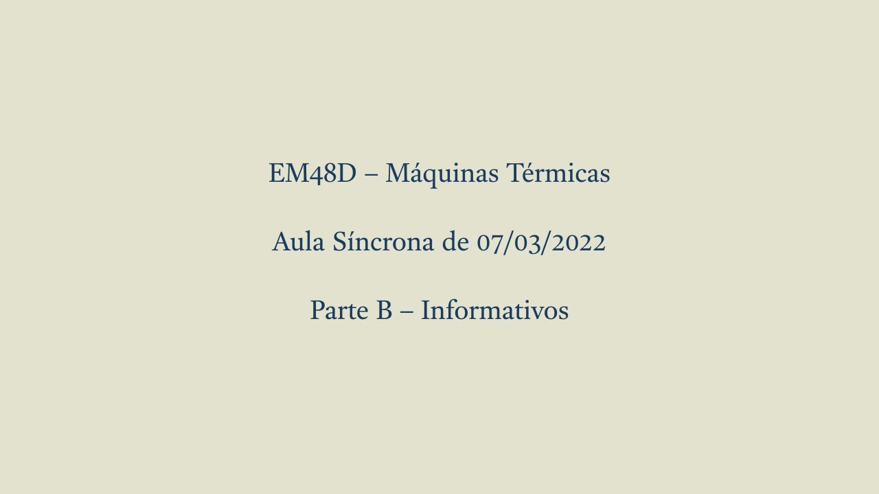 Aula Síncrona de Máquinas Térmicas de 07/03/2022 - Parte B - Informativo