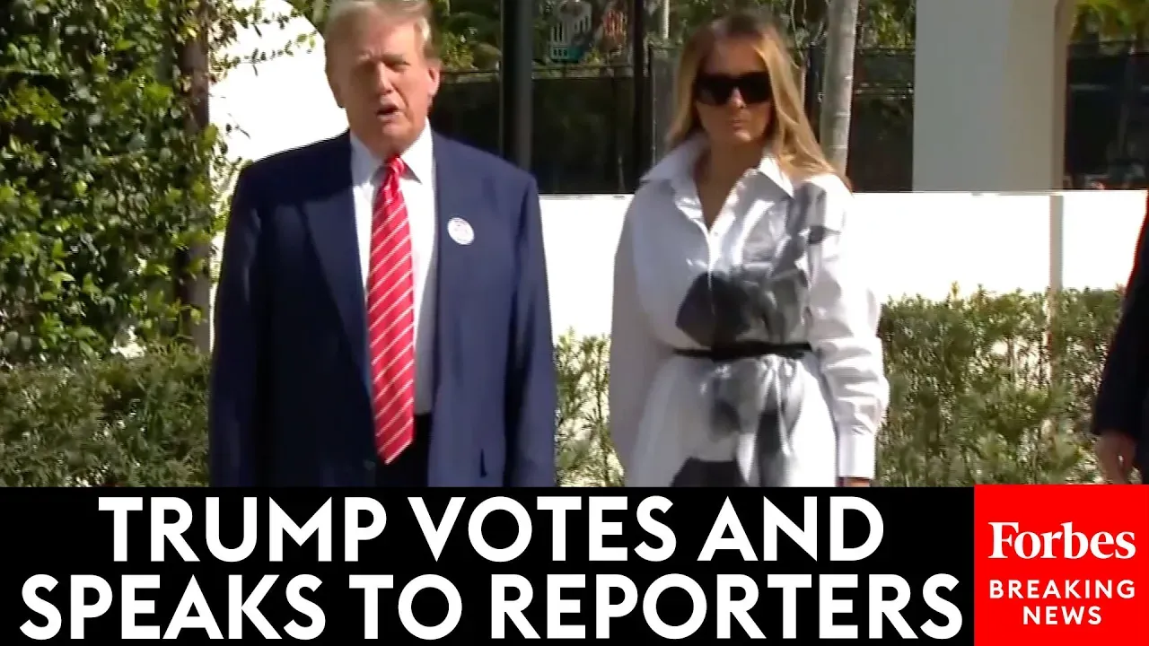 Trump Defends Peter Navarro, Comments About Jewish Americans On Trip To Polls. Former President Trump speaks to reporters alongside his wife former First Lady Melania Trump on a trip to vote in the GOP primary in Palm Beach, Florida.