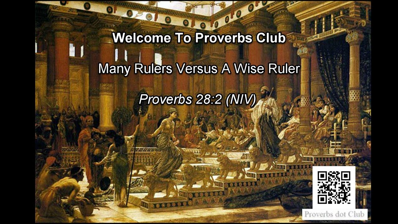 Welcome To Proverbs Club.Many Rulers Versus A Wise Ruler.