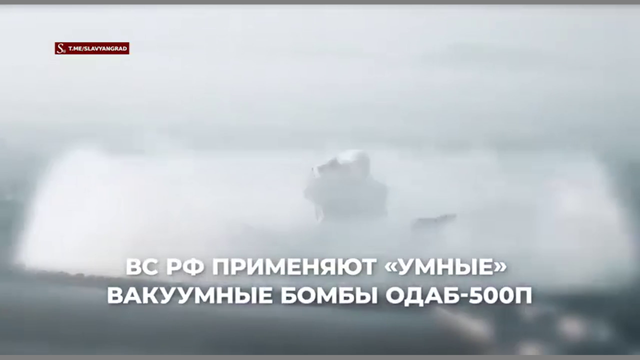 Footage of the gliding ODAB-500P Thermobaric bomb. It destroys all living things within 300 meters, the enemy is not saved by dugouts or trenches.