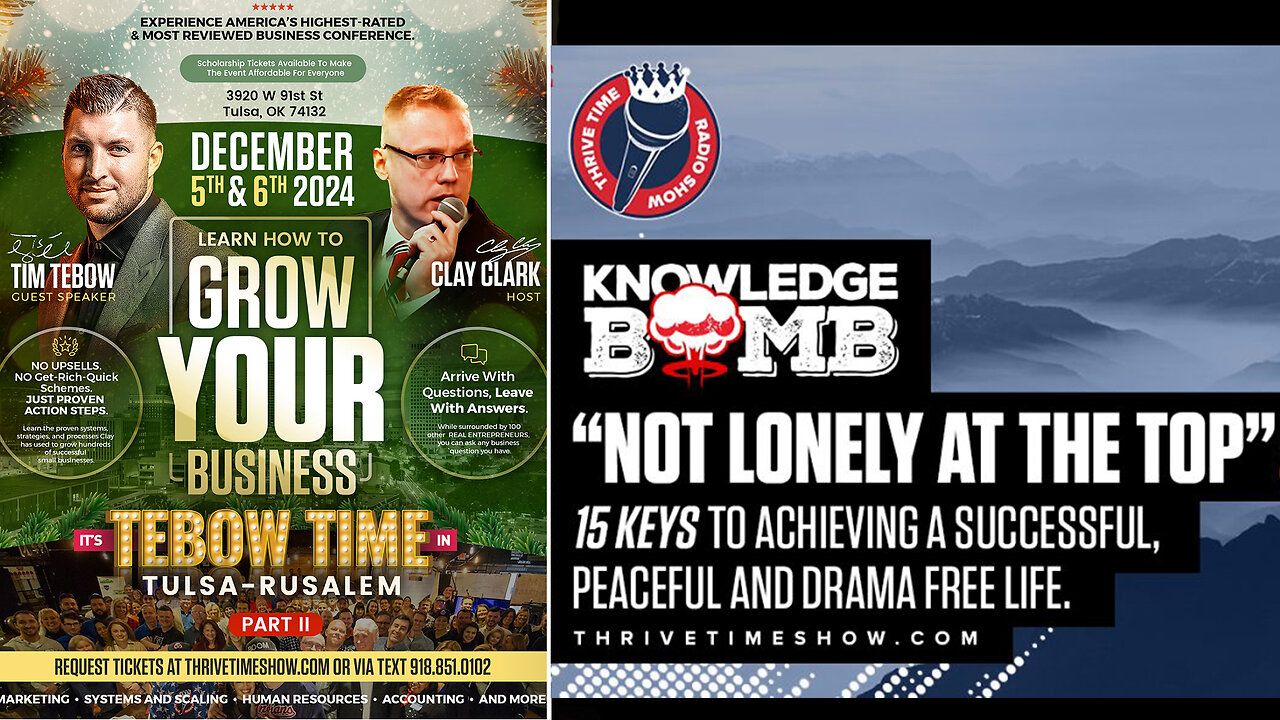 Join Tim Tebow, LIVE and in-person at Clay Clark's December 5th & 6th 2024 Thrivetime Show