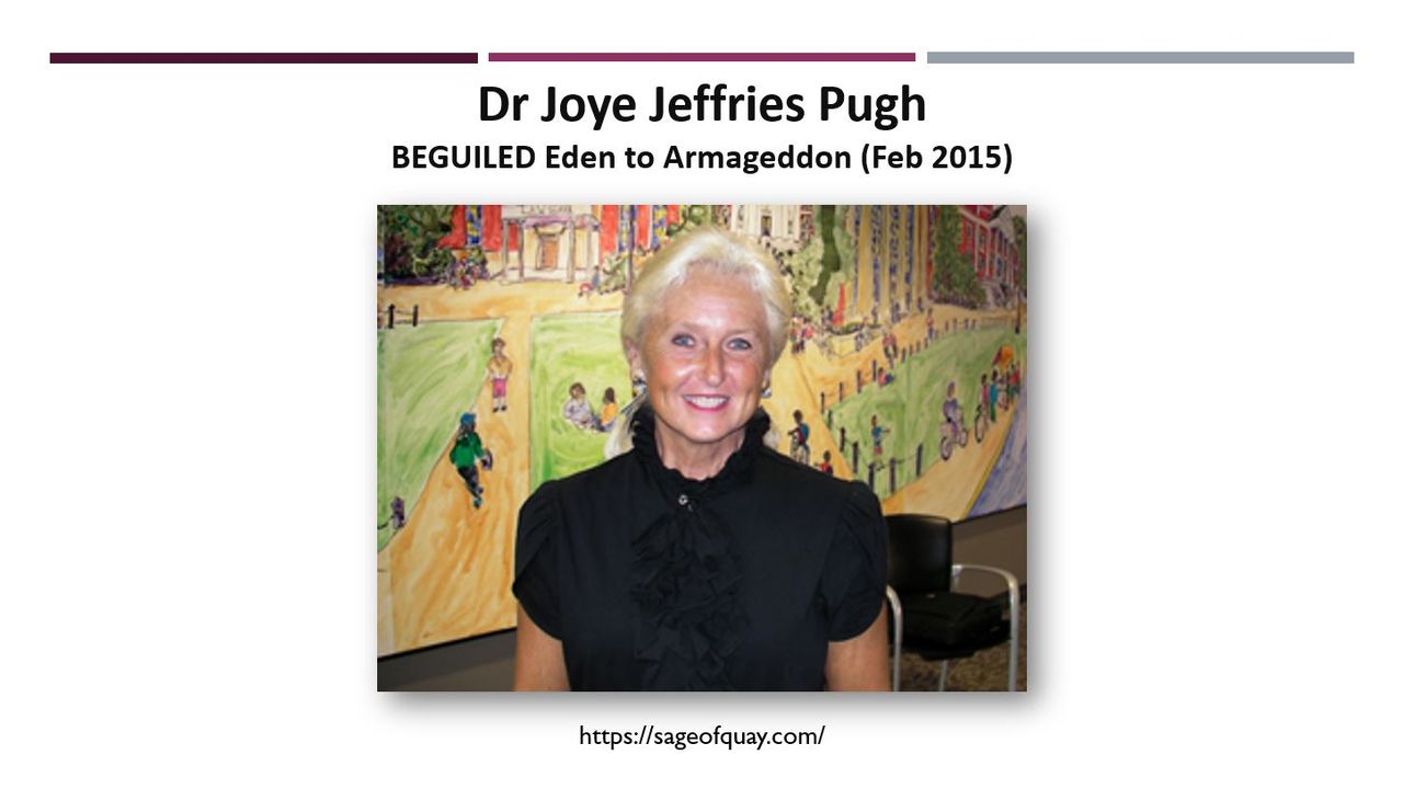 The discussion with Dr. Joye was insightful and wide ranging and I asked her if she could begin our conversation by telling us a bit about her journey in life, how she came to research Biblical prophecy and how her many years of research has culminated into her writing BEGUILED Eden to Armageddon