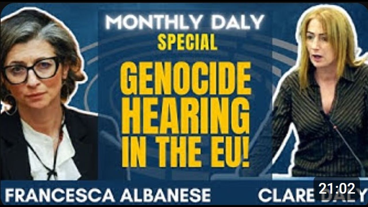 https://youtu.be/pPcD8h8S9SY?si=DQdhVuUpe-MgtFFv 28 Apr 2024 The Monthly DalyFrancesca Albanese, the United Nations Special Rapporteur on the occupied Palestinian territories and a human rights lawyer for many years, speaks to the Left Group at the EU Parliament, invited by Clare Daly and Mick Wallace. Listen to why she argues that what is happening in Gaza must be treated as the crime of Genozide and what the obligation of the international community is.