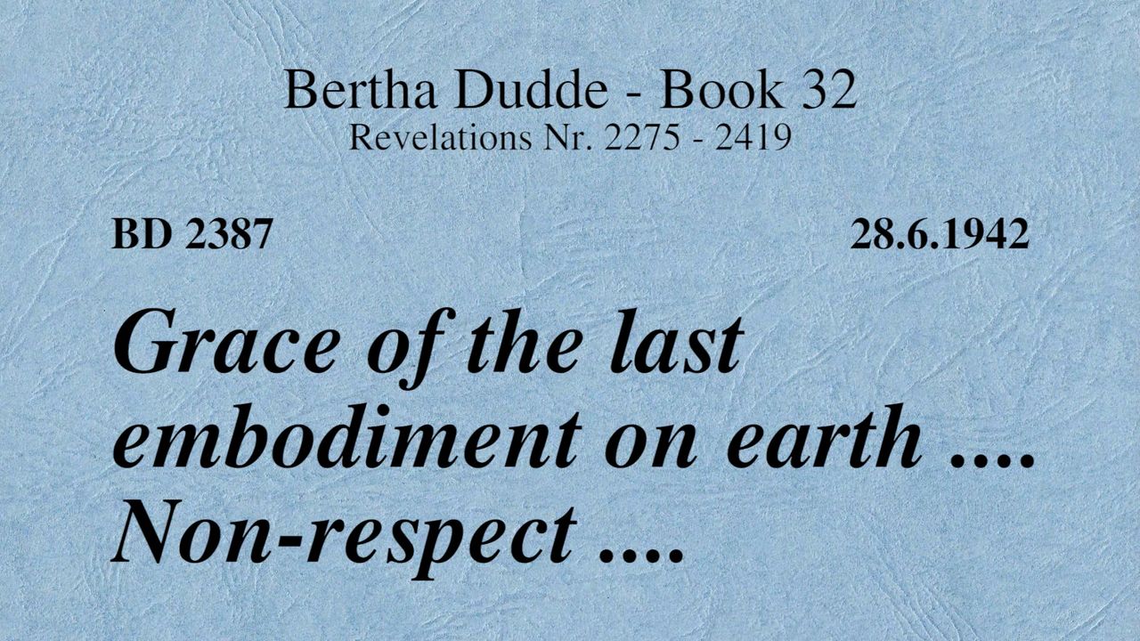 With these words the revelations of God to Bertha Dudde began on June 15, 1937, which found the conclusion on August 17, 1965 with the manifestation 9030 as a seal.