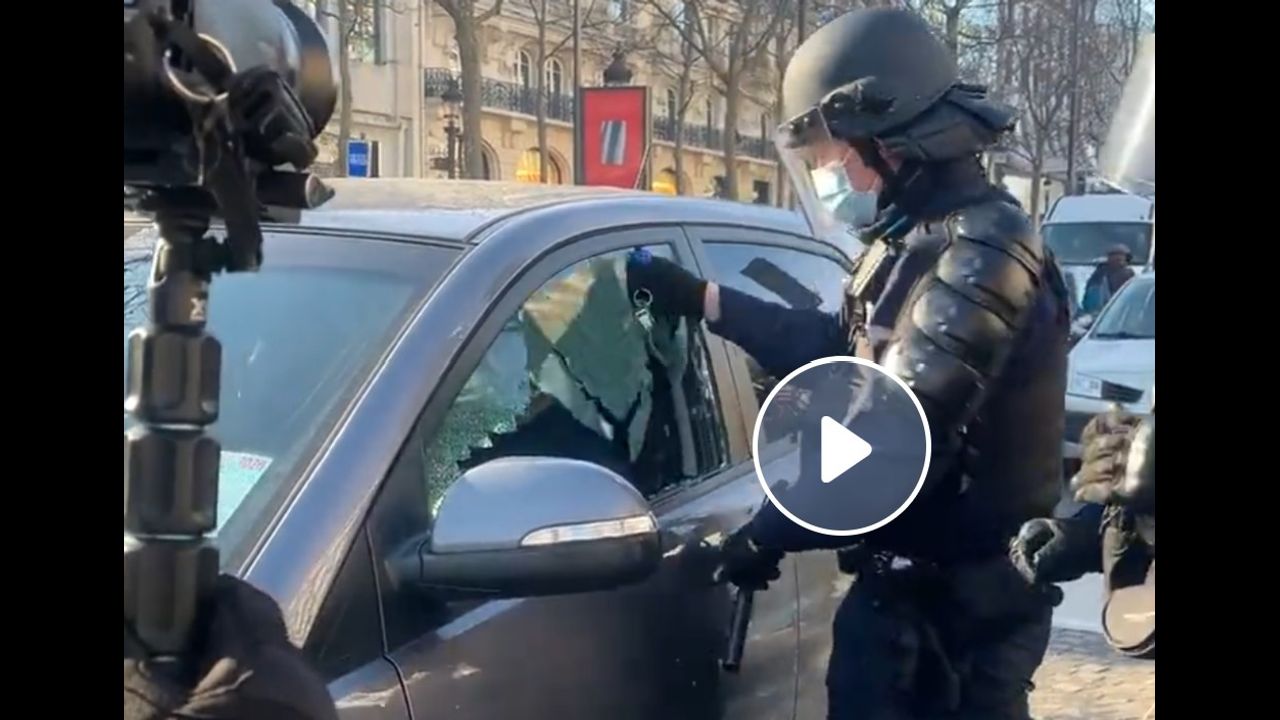 Tyrannical Police Break Window Of Peaceful Protestor in France!