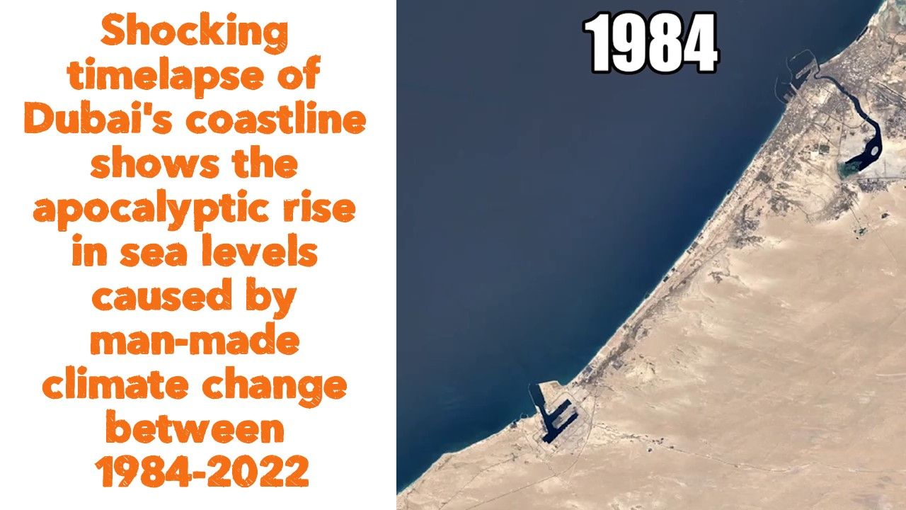 Shocking timelapse of Dubai's coastline shows the apocalyptic rise in sea levels caused by man-made climate change between 1984-2022. 😱