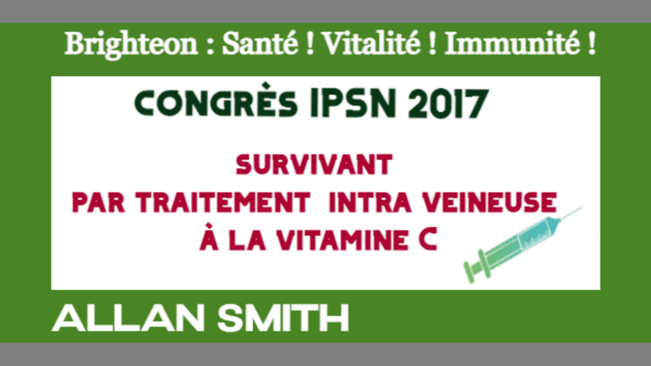En présence du Dr Thomas Levy, cardiologue (MD, PhD), Allan Smith nous raconte comment il est passé de la mort à la vie grâce à un traitement à la vitamine C en intra veineuses.Puis, le Dr Thomas Levy intervient et présente une explication magistrale de la guérison de très nombreuses maladies grâce à la prise élevée de vitamine C liposomale et/ou au traitement à la vitamine C en intra veineuses. A noter que ce qu'ils appellent "lypo-spheric vitamin c" en anglais est l'équivalent de la "vitamine C liposomale" en Français.