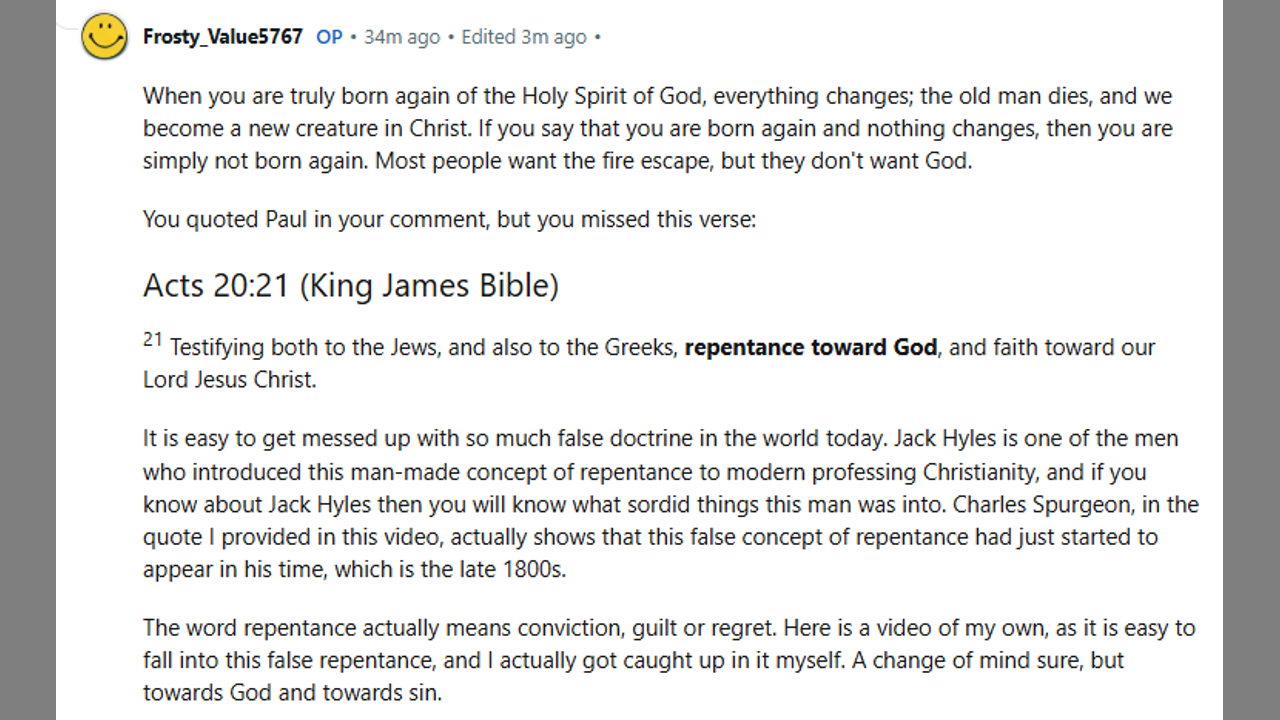 John 3:3 Jesus answered and said unto him, Verily, verily, I say unto thee, Except a man be born again, he cannot see the kingdom of God. (King James Bible).