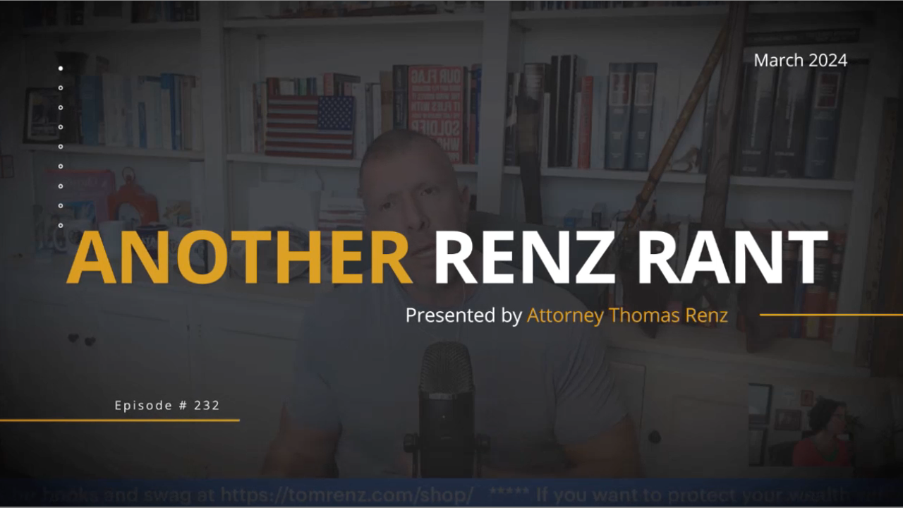 Donate: We are a nation of 320 million. If 100,000 would give $20 per month we could wage lawfare on a scale never seen. If you give to our GiveSendGo https://www.givesendgo.com/renzlaw or join our community of Renz Warriors at www.TomRenz.com we will use that money to help make that fight happen. For less than the cost of a Starbucks Coffee per week we can fight to change our nation.