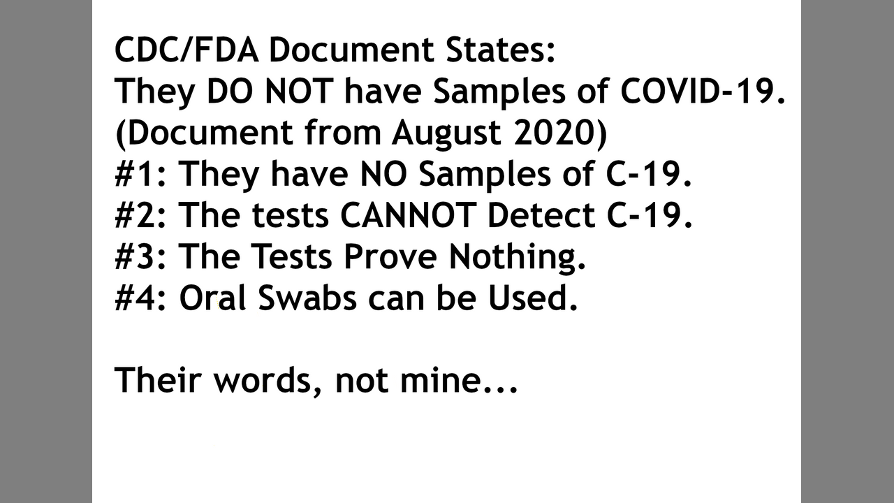 CDC/FDA Document States they DO NOT Even Have Samples of COVID-19. (Document from August 2020)