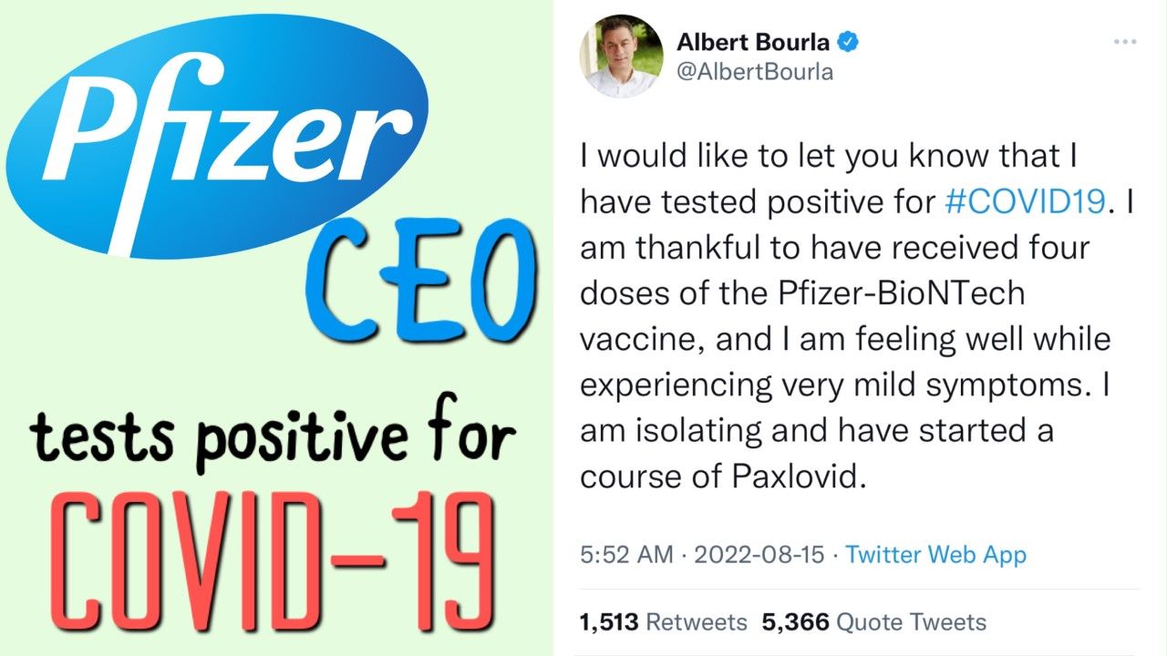 Reacting to the news that Pfizer CEO Albert Bourla tested positive for COVID-19 after being quadruple vaccinated, and the ridiculous, shameless Pfizer promotional stunt in his Twitter announcement.