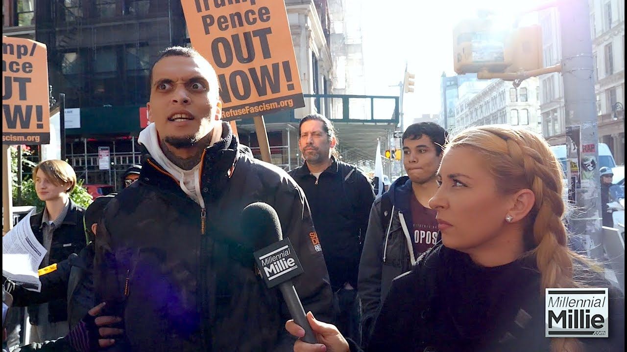 The political action group Refuse Fascism has coordinated weeks of civil unrest to correspond with House Democrats' impeachment proceedings against President Trump adding pressure to "drive him out". Millie Weaver attended their first street action in New York City to ask them why "Trump must go". Despite repeating mainstream media fake news talking points, screaming, and pushing Millie, these so-called Anti-Fascists want to overthrow the Trump administration by any means necessary hoping they can draws millions into the streets to rampage until he is forced out of office.