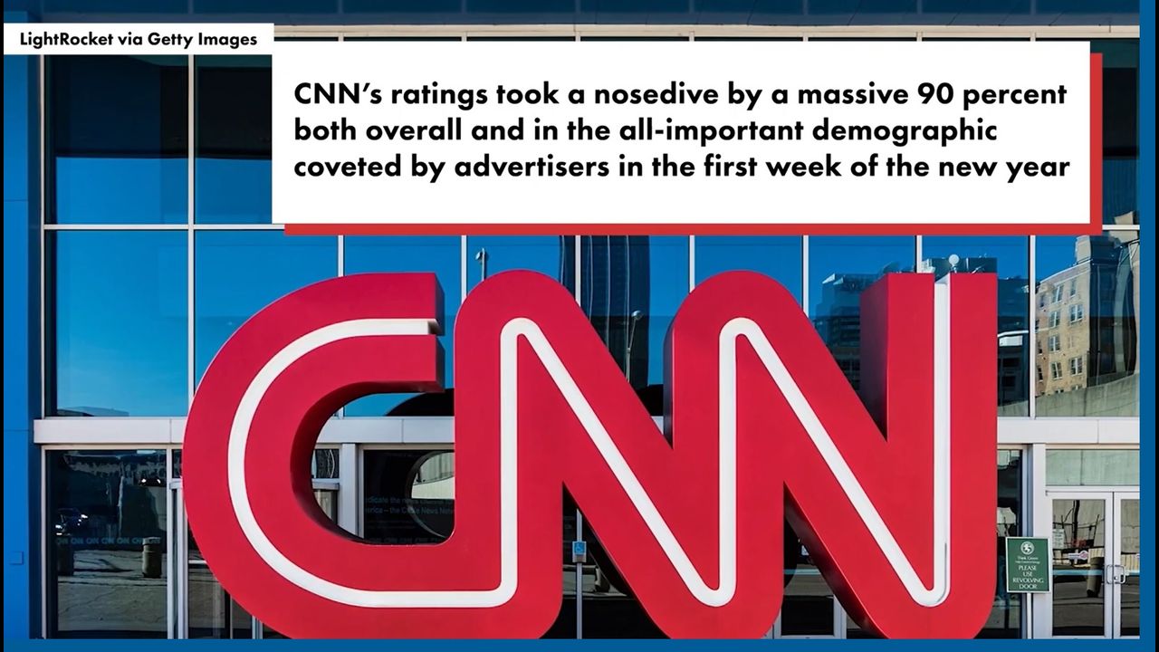 CNN’s ratings took a nosedive by a massive 90 percent both overall and in the all-important demographic coveted by advertisers in the first week of the new year.