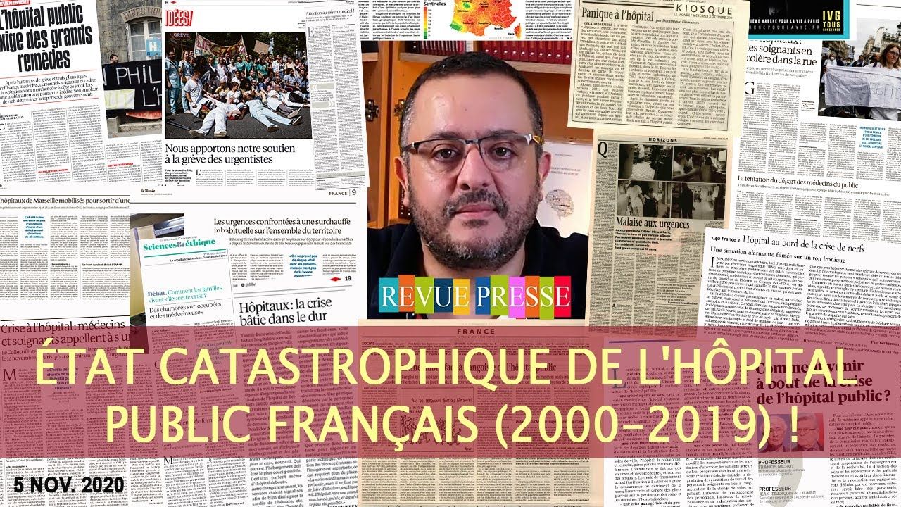 Voici l'extrait de l'IEQ n°22 du 5 nov. 2020 de Salim Laïbi qui revient sur les articles de presse des 20 dernières années concernant l'état catastrophique de l'hôpital public français malgré des centaines de milliards d'euros dépensés ! Rien n'a été fait pour améliorer la situation, bien au contraire, tout a été fait pour le détruire, c'est un sabotage pur et simple.