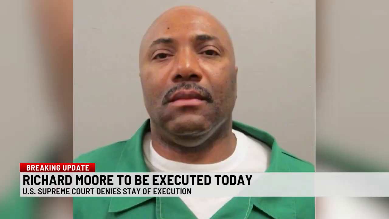 Moore went into a convenience store and walked towards the cooler. A witness heard James say “What the hell do you think you’re doing?”, before turning around to see Moore holding both of James’ hands in one of his, with his other hand holding James’ gun. Moore pointed the gun at the witness, before shooting and missing him, though the witness pretended to be dead. James pulled out another gun and shot at Moore several times, with one shot hitting Moore in the arm. Moore then shot James in the chest, before stealing $1408 from the store and fleeing in his truck, driving to a nearby residence to buy crack cocaine.