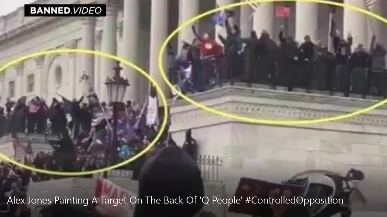 Everybody knows, including Alex Jones, that the people at the Capital on Jan 6th wearing Q garb were CRISIS ACTORS and ANTIFA. There weren't NO Anons storming the Capital and Alex Jones knows it.