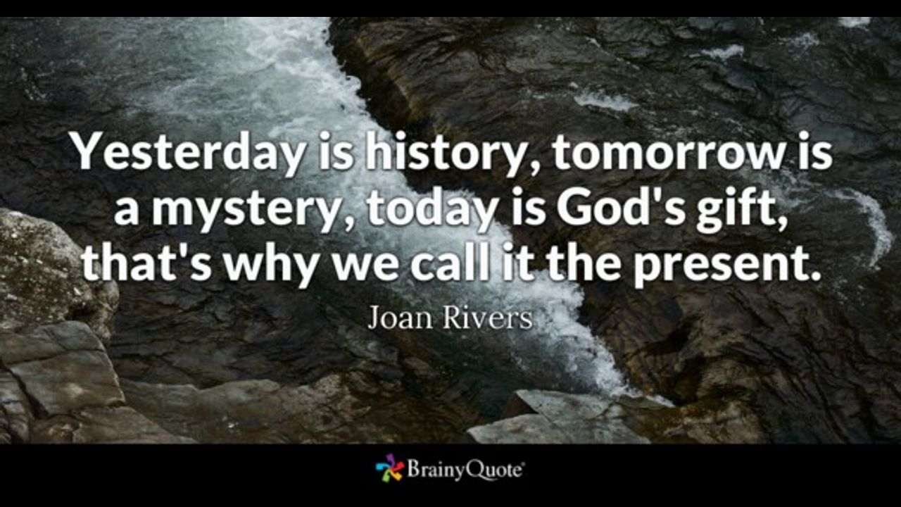 QUOTE ,, Yesterday is history, tomorrow is a mystery, today is God's gift, that's why we call it the present. Joan Rivers