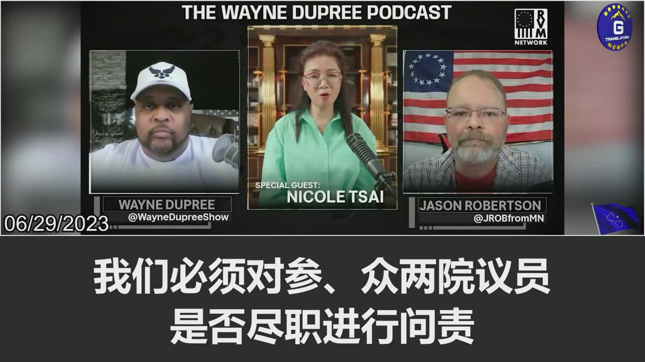 6/29/2023 【妮可做客韦恩·杜普里播客节目】妮可:只要中共每天还在美国作乱,美国人民就会遭难。我们要求国会将郭文贵先生从联邦监狱里释放出来让他到国会作证, 这样可以挽救美国人的大量时间和金钱。