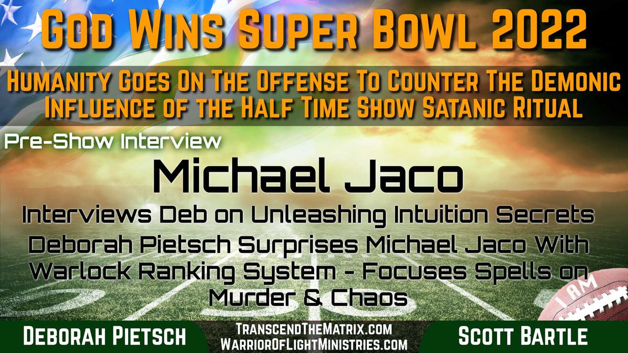 Deborah Pietsch was interviewed by Michael Jaco prior to our live broadcast "God Wins Super Bowl 2022". Discussed were some of the nefarious energies used to influence our reality... and in ceremonies like theHalf Time Show of the Super Bowl.