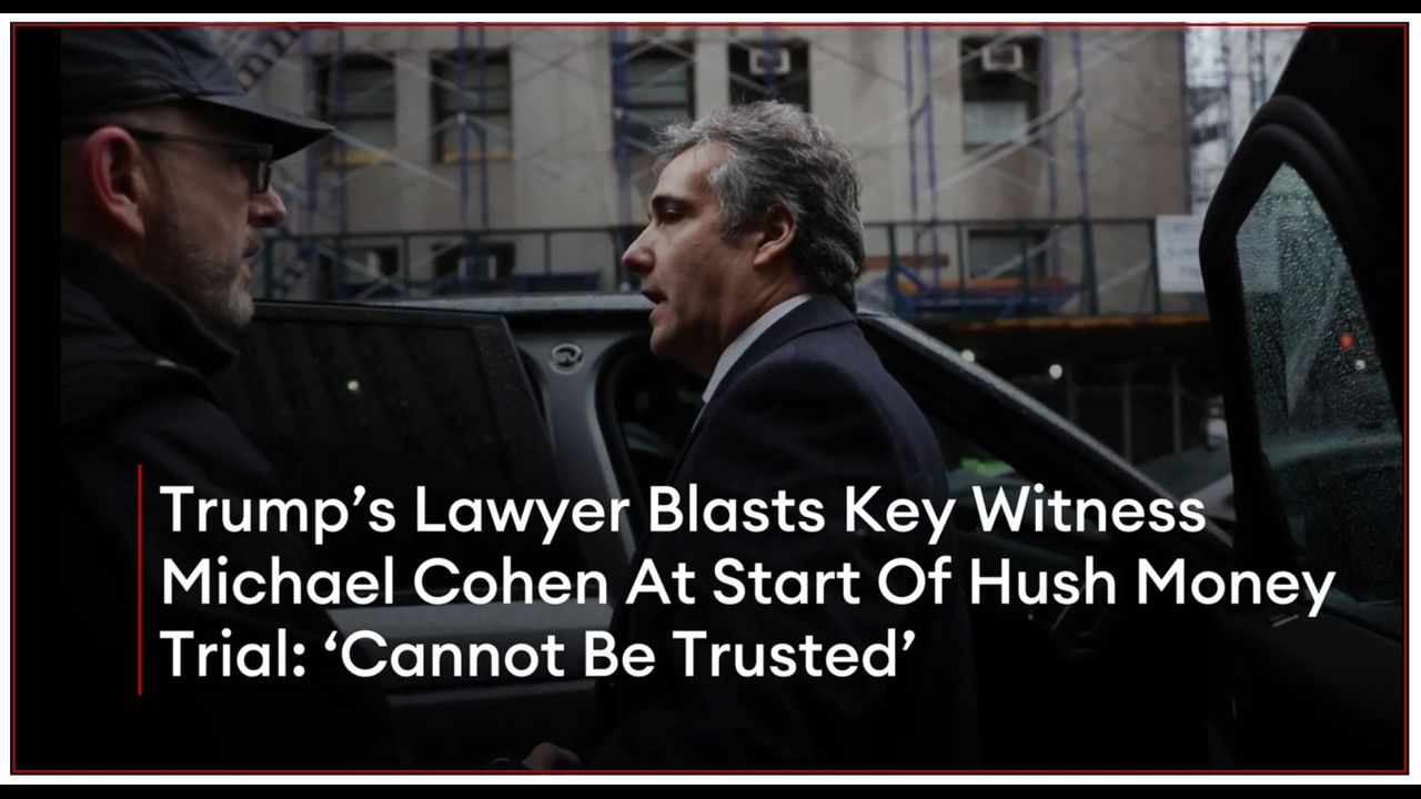 Trump’s Lawyer Blasts Key Witness Michael Cohen At Start Of Hush Money Trial: ‘Cannot Be Trusted’. Former President Donald Trump’s legal team in his New York hush money trial targeted Trump’s former fixer Michael Cohen in opening statements on Monday, arguing the former Trump attorney “cannot be trusted,” as the defense lays out arguments against the prosecution’s key witness and the person who made the payment to former adult film star Stormy Daniels.