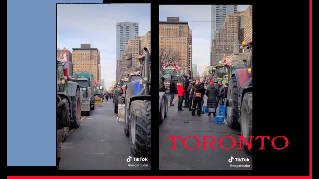 Trucks and farm tractors begin to arrive in Toronto..!!