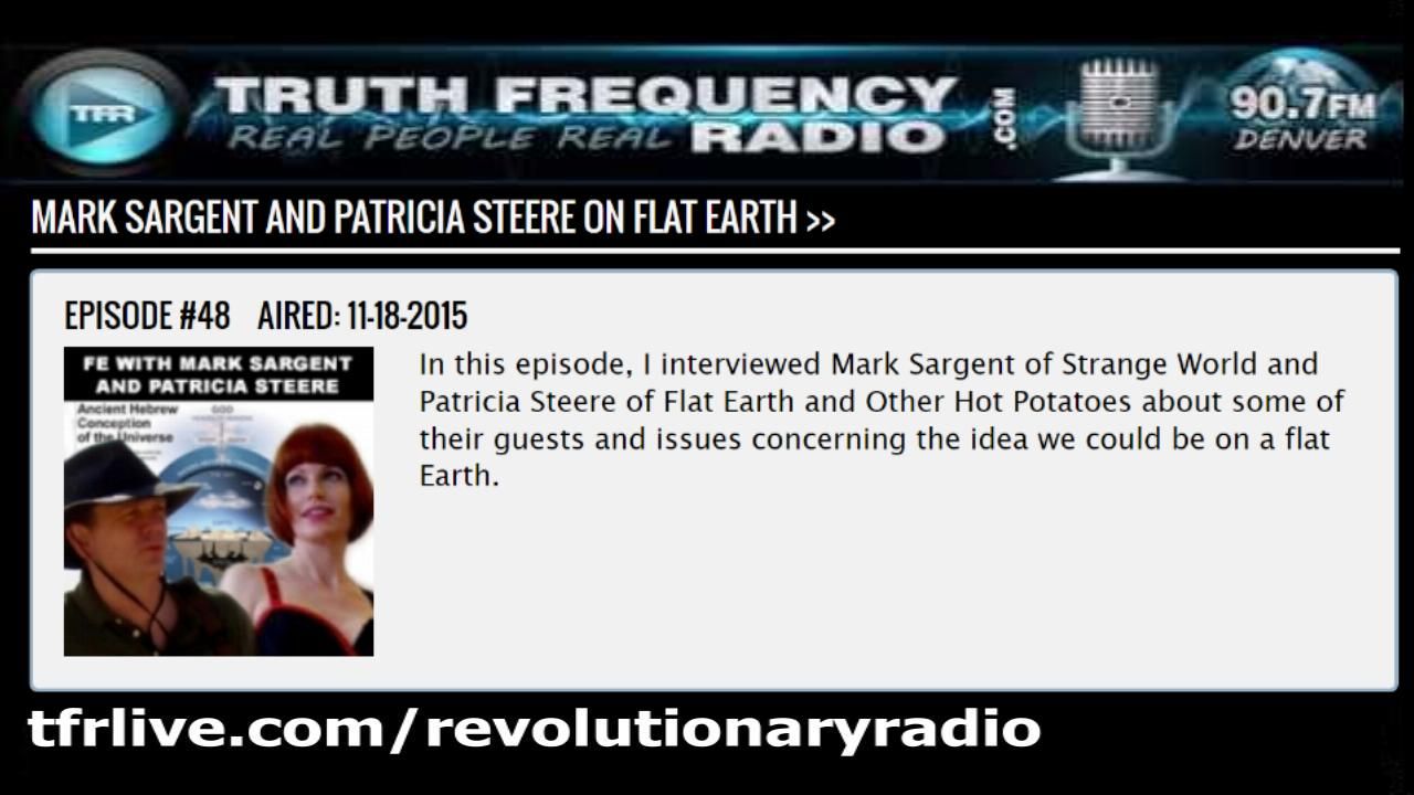 In this episode, I interviewed Mark Sargent of Strange World and Patricia Steere of Flat Earth and Other Hot Potatoes about some of their guests and issues concerning the idea we could be on a flat Earth.