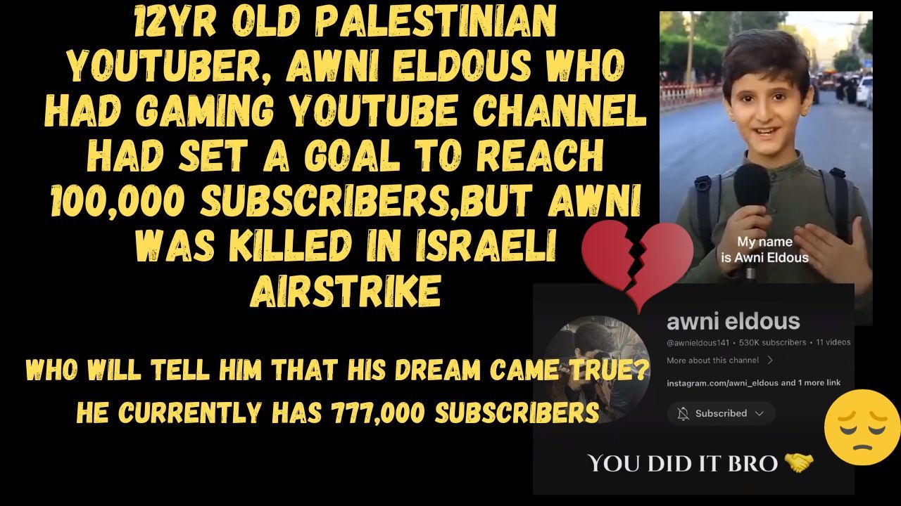 who had gaming YouTube channel had set a goal to reach 100,000 subscribers on his channel, but Awni was killed during bombing by an Israelı airstrıke in GÄza.