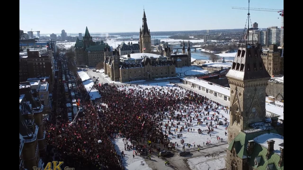 Canada Truck Convoy! The Largest In History, has arrived in Ottawa in protest of vaccine mandates. Trudeau ran away and hid like a coward!