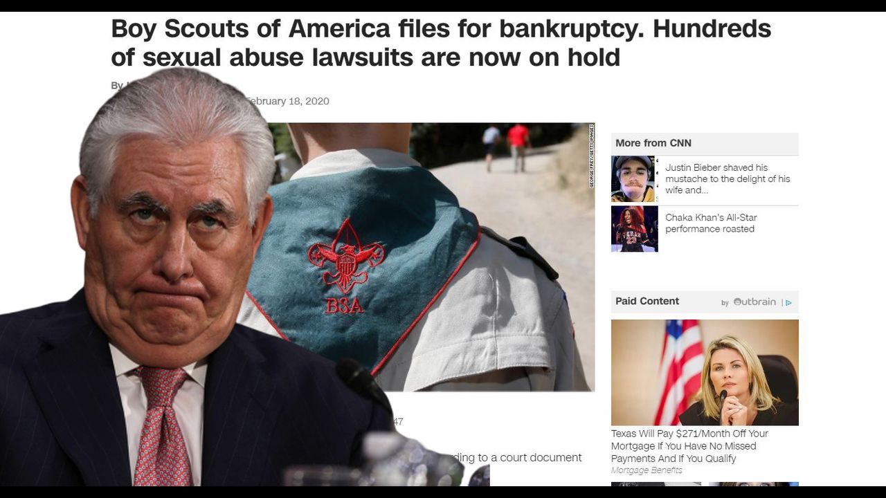 Even though the BSA abuse had been going on for decades, Tillerson still pushed for openly homosexual scout leaders? Now the BSA is declaring bankruptcy with hundreds of lawsuits.