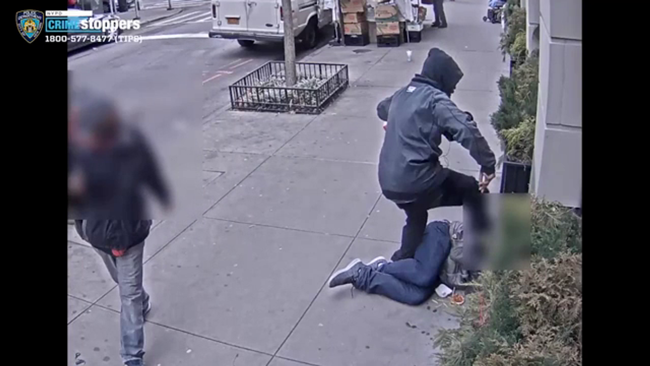 The victim was walking down the street, when the attacker blew smoke in his face, before waving a McDonald’s bag at him. The victim swatted the bag away and continued walking. The attacker followed him, before hitting him from behind and knocking him to the ground. The attacker then punched the victim multiple times, before rubbing his hamburger in the victim’s face, then stomping on the victim’s head.