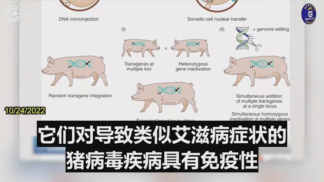 Summary:10/24/2022 Spotlight on China reports: Chinese scientists announced they successfully bred genetically modified pigs immune to a swine viral disease that causes AIDS -like symptoms and the same technology could be used to breed pigs used as human organ donors.