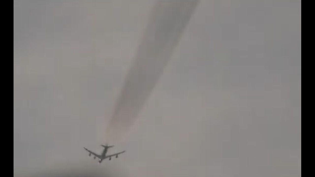 Airliner caught dumping a "full wing" aerosol dispersal over Staffordshire, England.