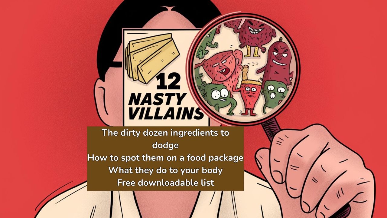 What’s really in your food? You might be shocked! Picture this: You’re in the grocery store, grabbing your go-to cereal or soda, thinking it’s all good because it’s “approved.” But here’s the twist — some ingredients in there could secretly harm you or your kids. In the U.S., food makers slip in chemicals banned in Europe and Canada, and they don’t always list them clearly. These “dirty dozen” food villains could mess with your health. Spotting them takes more than a quick glance at the ingredients list. Let’s uncover the truth and learn how to fight back! We’ll cover The Dirty Dozen ingredients. A list of 12 nasty ingredients to avoid, how they might show up, and what they could do to your body or your child’s body. This video lists the 12 ingredients to avoid, how they might harm you, and how to spot them on a food label.Â