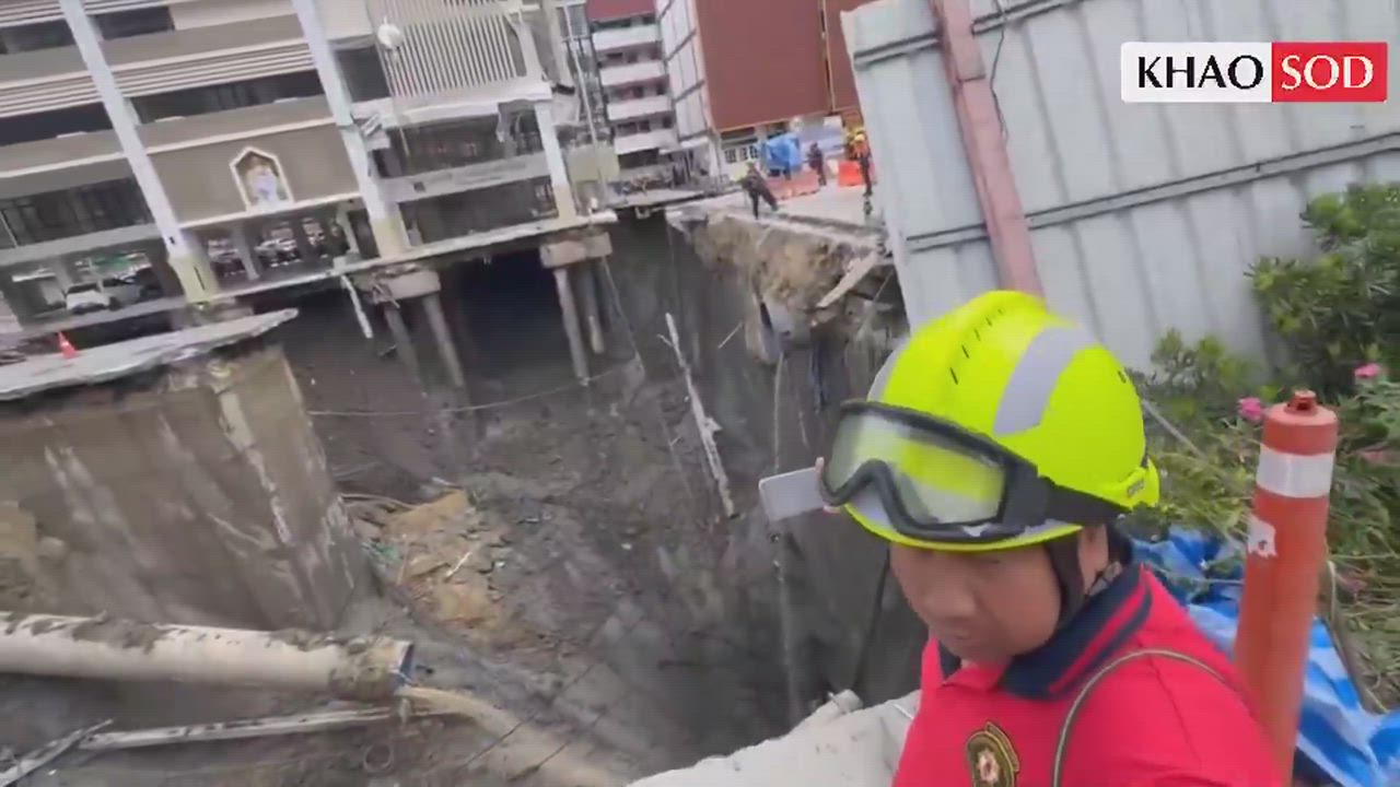 More kept falling Another ground subsidence hit Bangkok — this time in front of Nawamintrathiraj University, triggering further collapse of the soil outside Vajira Hospital