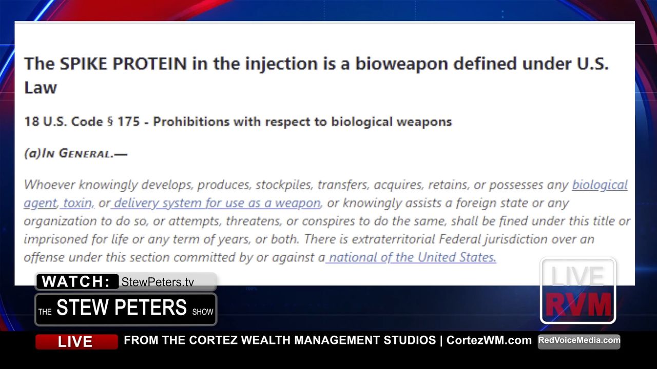 Dr. Martin gives an earth shaking interview with Stew Peters where he provides 100% conclusive proof that there is no virus, and that this is a conspiracy to assault the world with a manufactured bio-weapon "vaccine" These revelations are made especially sinister as it appears that one of the main objectives of this War Crime is to take out the US Military. This is TREASON at the highest level, the Justice Department has failed America, and now the Soldiers are preparing to be murdered by their own government as their execution date has been set to begin this September.