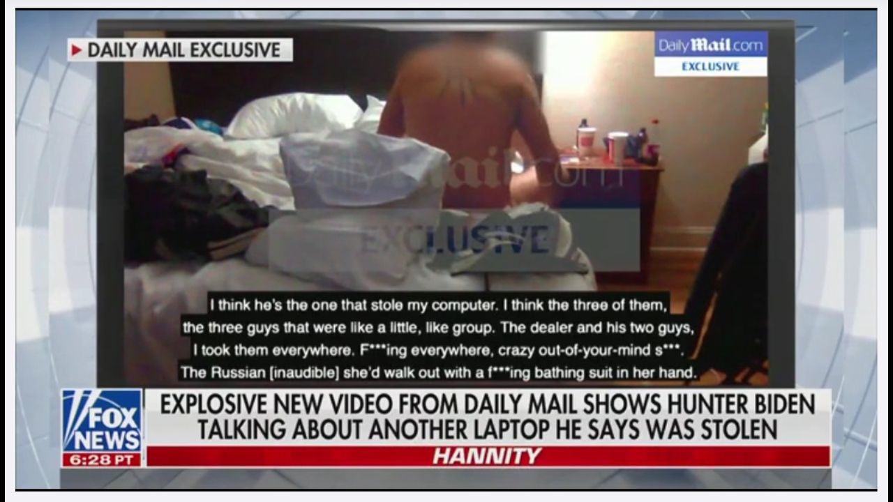 Hannity obtained this video of Hunter Biden from The Daily Mail UK. Too bad they are just dripping out bits and pieces, its much less effective. They have the laptop contents, why not blow it all out there so We The People have the evidence. What are they doing with it anyway? Is it to sustain their ratings?