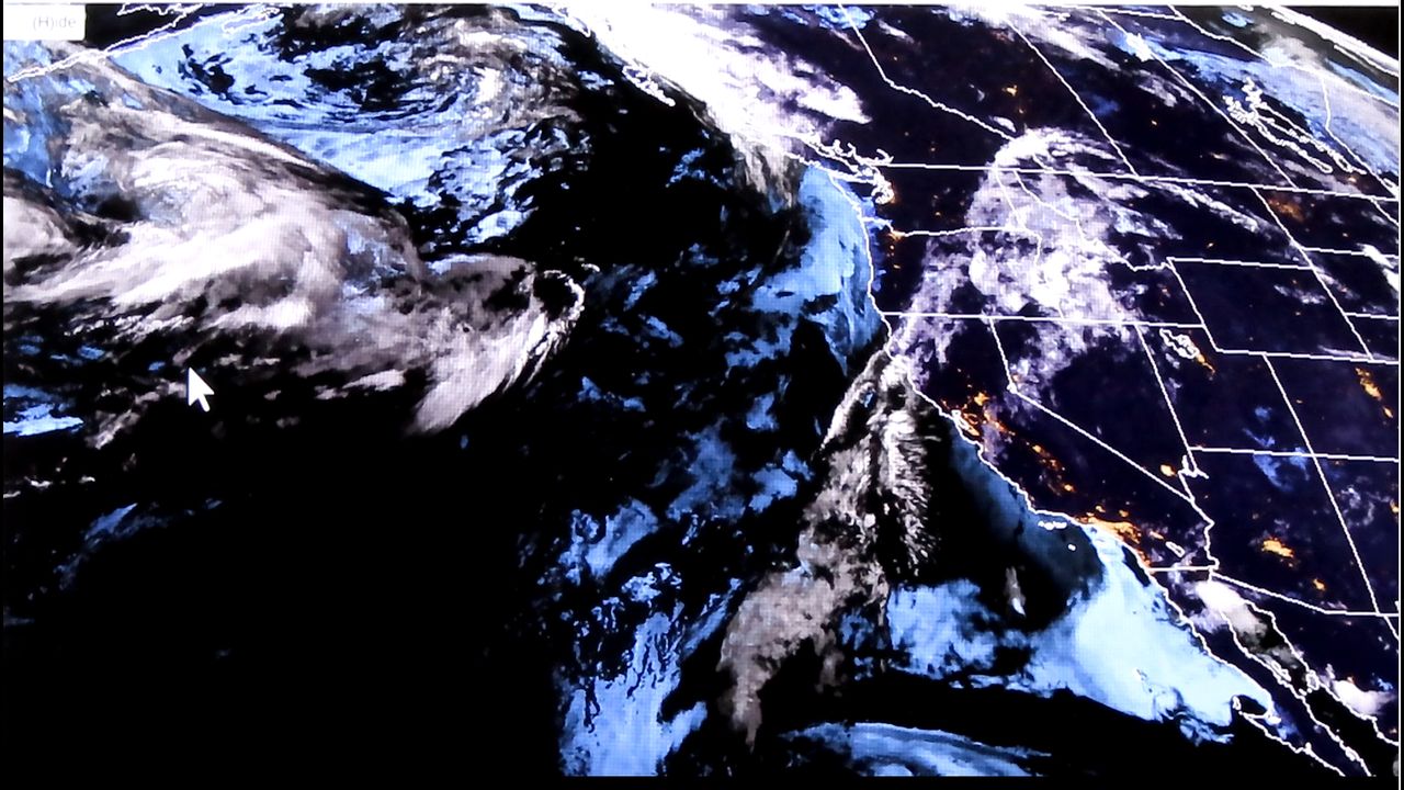 The geo-stationary satellite positioned over the Pacific Ocean off the coast of North America provides a moving video loop of our weather from a space-oriented view.